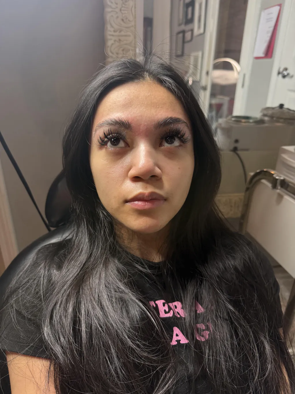 Do not remove adhesive or lash extensions with an adhesive remover, especially if they are still feeling sensitivity or itchiness in their eyes.